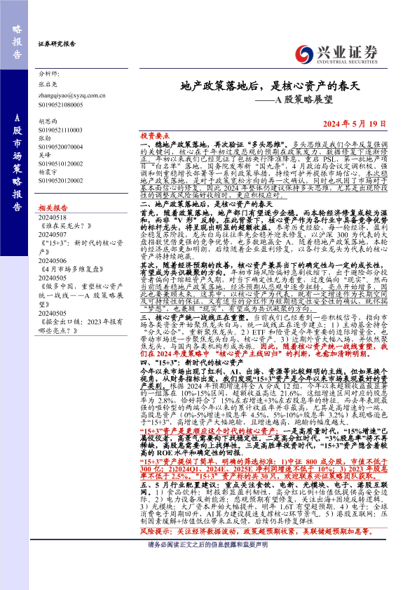 【兴业证券】【20240519】地产政策落地后,是核心资产的春天——A股策略展望-21页
