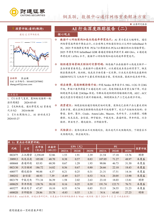 【财通证券】【20240523】AI行业深度跟踪报告(二):铜互联,数据中心通信网络重要解决方案-27页