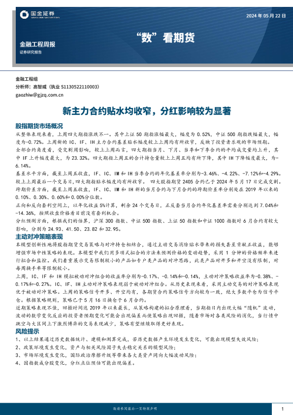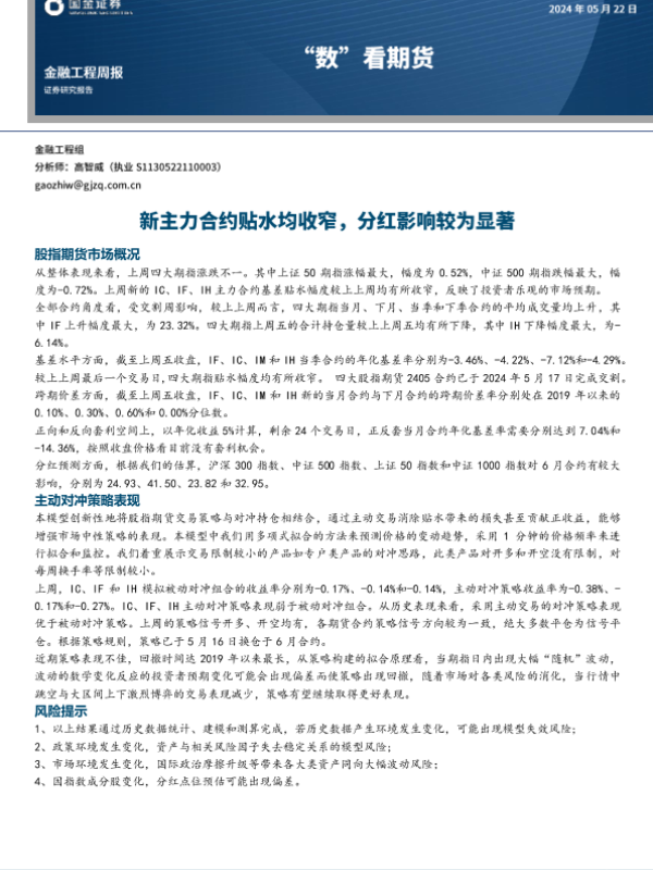 【国金证券】【20240522】“数”看期货:新主力合约贴水均收窄,分红影响较为显著-12页
