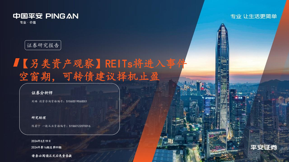 【平安证券】【20240519】【另类资产观察】REITs将进入事件空窗期,可转债建议择机止盈-17页