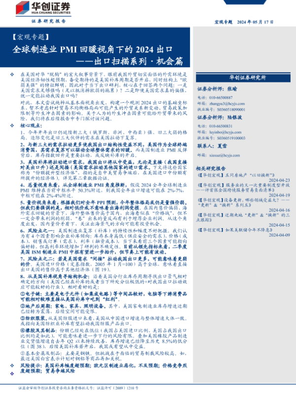 【华创证券】【20240517】全球制造业PMI回暖视角下的2024出口-37页