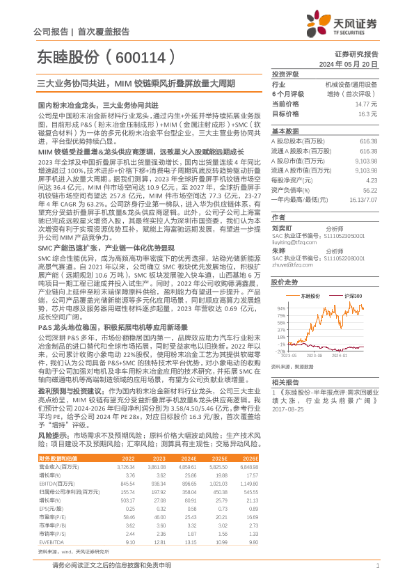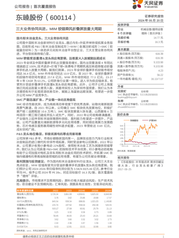 【天风证券】【20240520】东睦股份-600114.SH-三大业务协同共进,MIM铰链乘风折叠屏放量大周期-31页