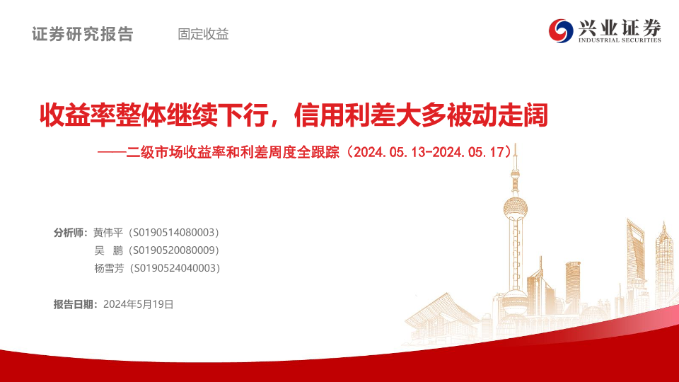 【兴业证券】【20240519】二级市场收益率和利差全跟踪:收益率整体继续下行,信用利差大多被动走阔-49页