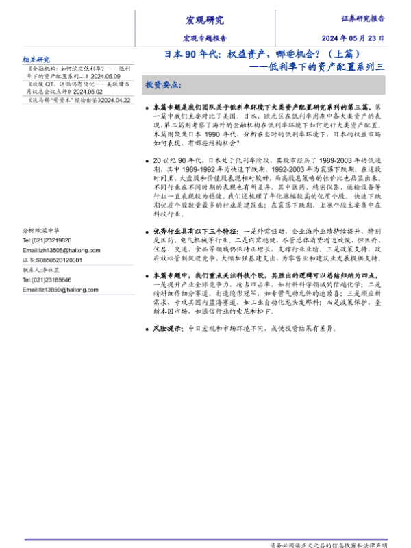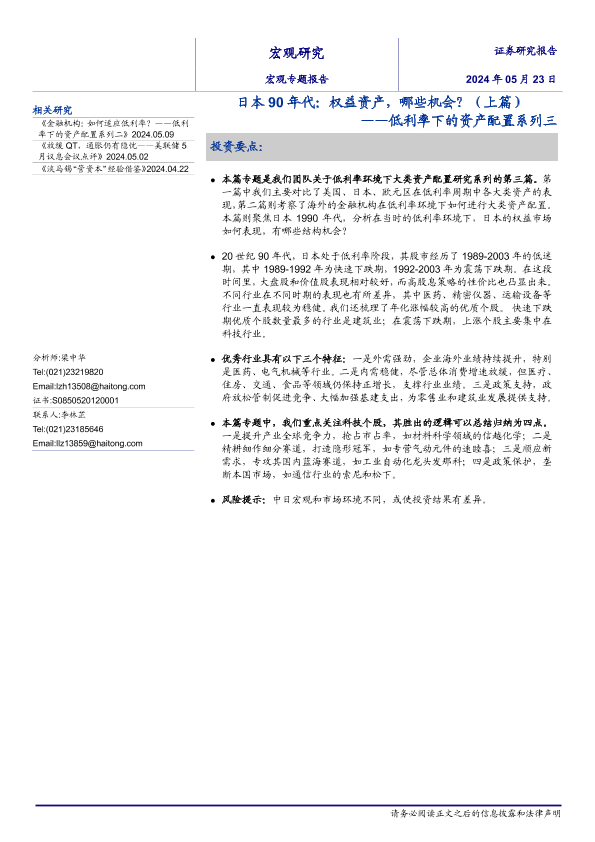 【海通证券】【20240523】低利率下的资产配置系列三-日本90年代,权益资产,哪些机会?(上篇)-16页