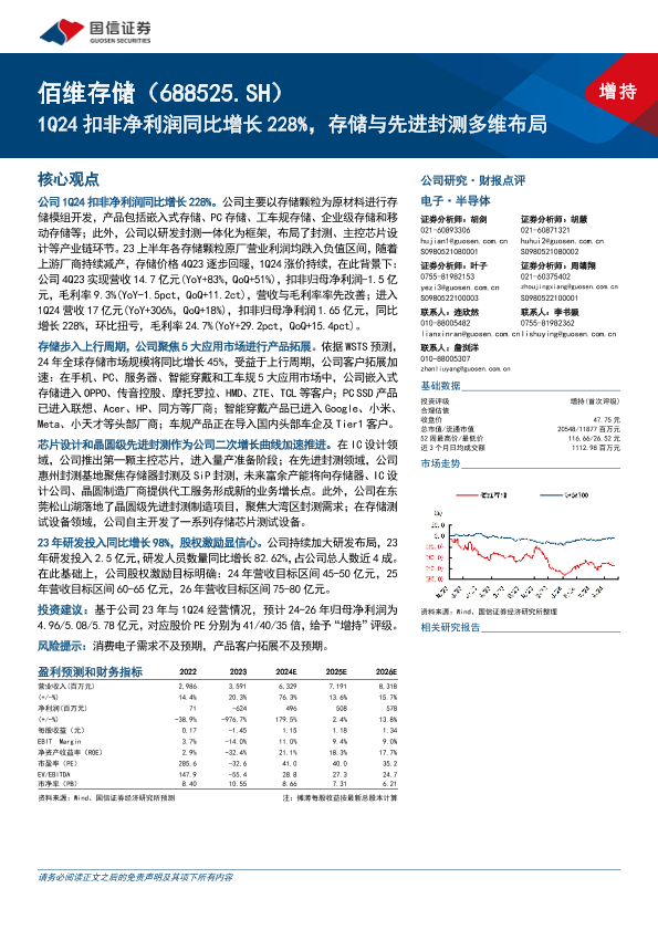 【国信证券】【20240523】佰维存储(688525)1Q24扣非净利润同比增长228%25,存储与先进封测多维布局-16页