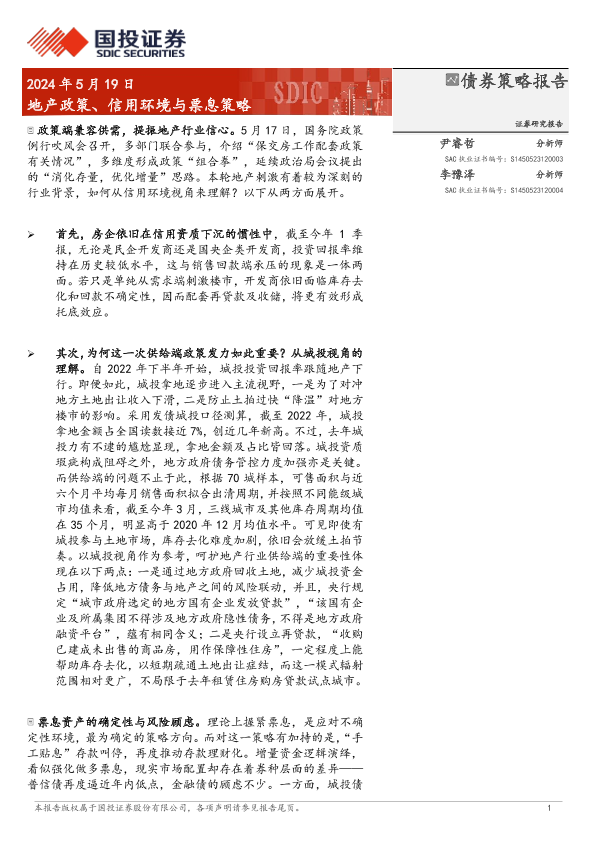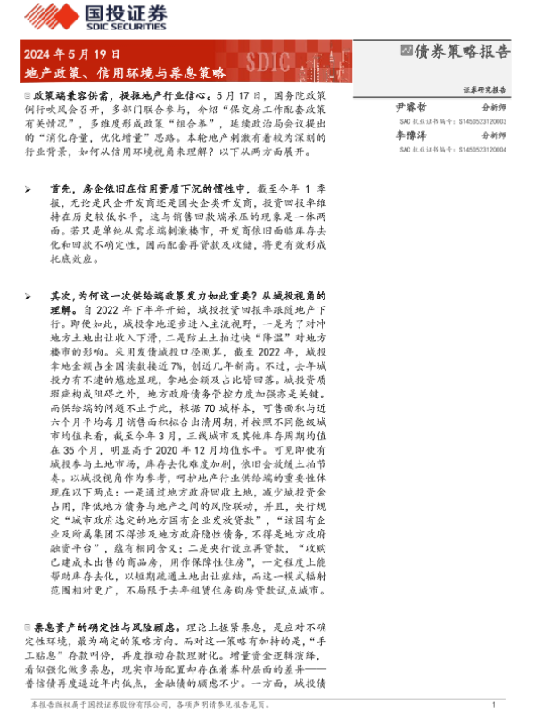 【国投证券】【20240519】债券策略报告:地产政策、信用环境与票息策略-18页