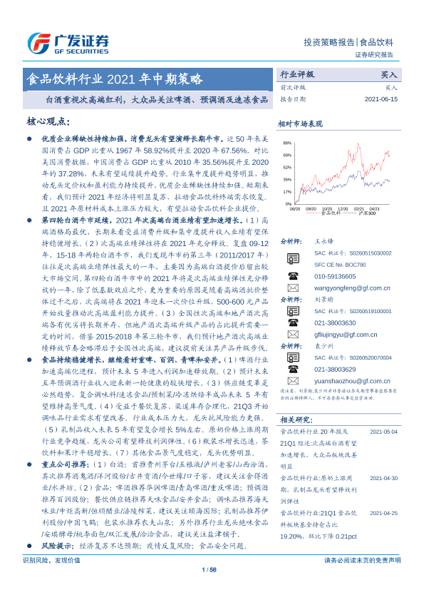 【广发证券】【20210615】食品饮料行业2021年中期策略:白酒重视次高端红利,大众品关注啤酒、预调酒及速冻食品-56页