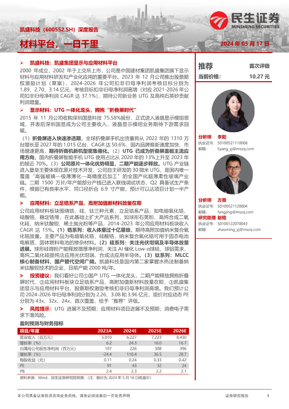 【民生证券】【20240517】凯盛科技-600552.SH-深度报告:材料平台,一日千里-36页