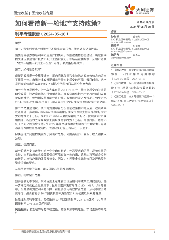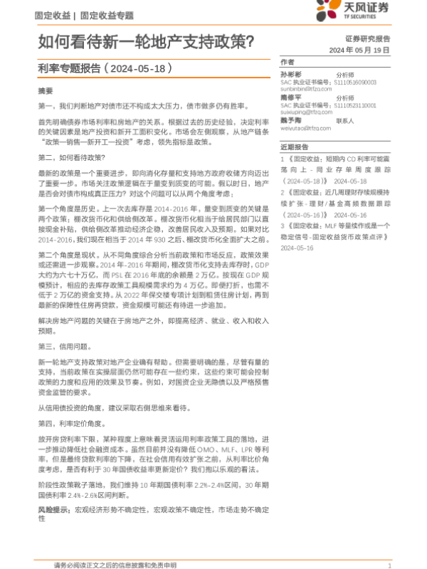 【天风证券】【20240519】利率专题报告:如何看待新一轮地产支持政策?-21页