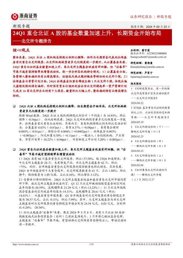 【浙商证券】【20240523】北交所专题报告:24Q1重仓北证A股的基金数量加速上升,长期资金开始布局-25页