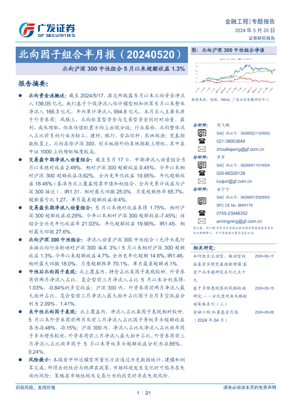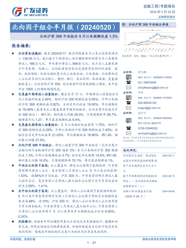 【广发证券】【20240520】北向因子组合半月报:北向沪深300中性组合5月以来超额收益1.3%-21页