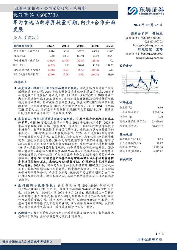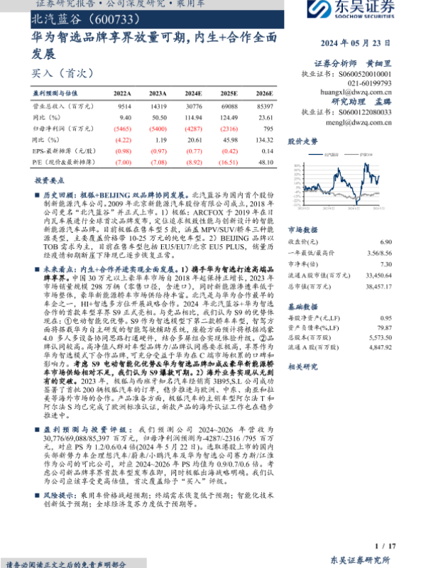 【东吴证券】【20240523】北汽蓝谷-600733.SH-华为智选品牌享界放量可期,内生+合作全面发展-17页