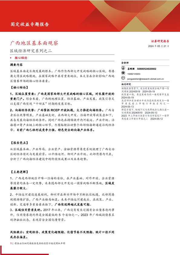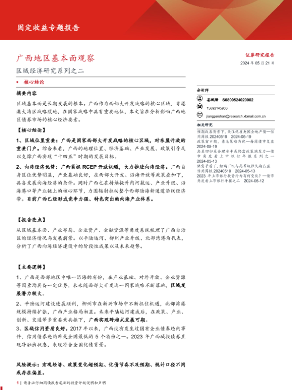债券市场 区域经济 基本面分析 广西 西部大开发