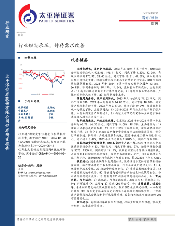 【太平洋证券】【20240520】医药行业深度研究:行业短期承压,静待需求改善-18页