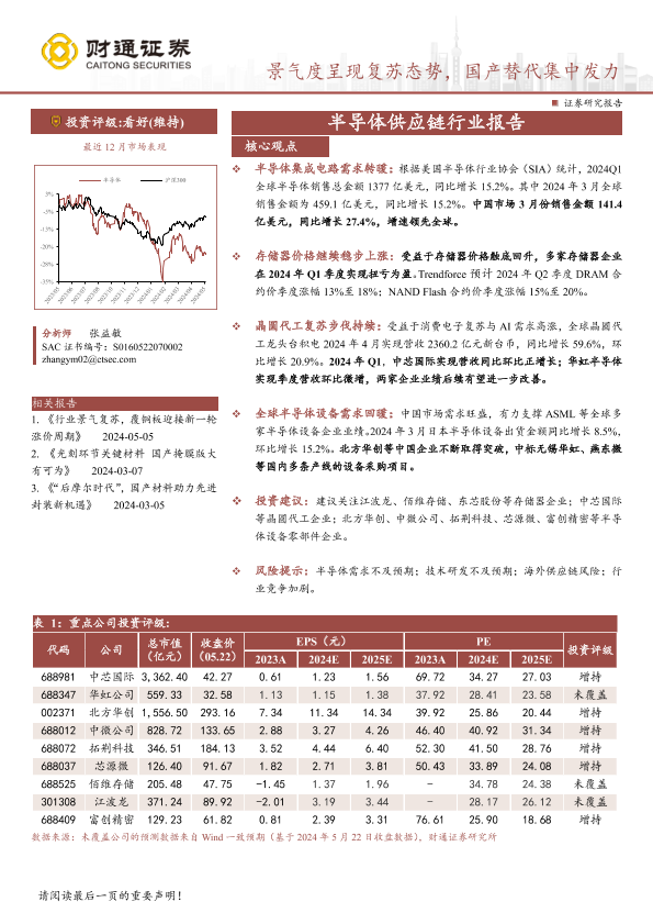 【财通证券】【20240523】半导体行业供应链行业报告:景气度呈现复苏态势,国产替代集中发力-22页