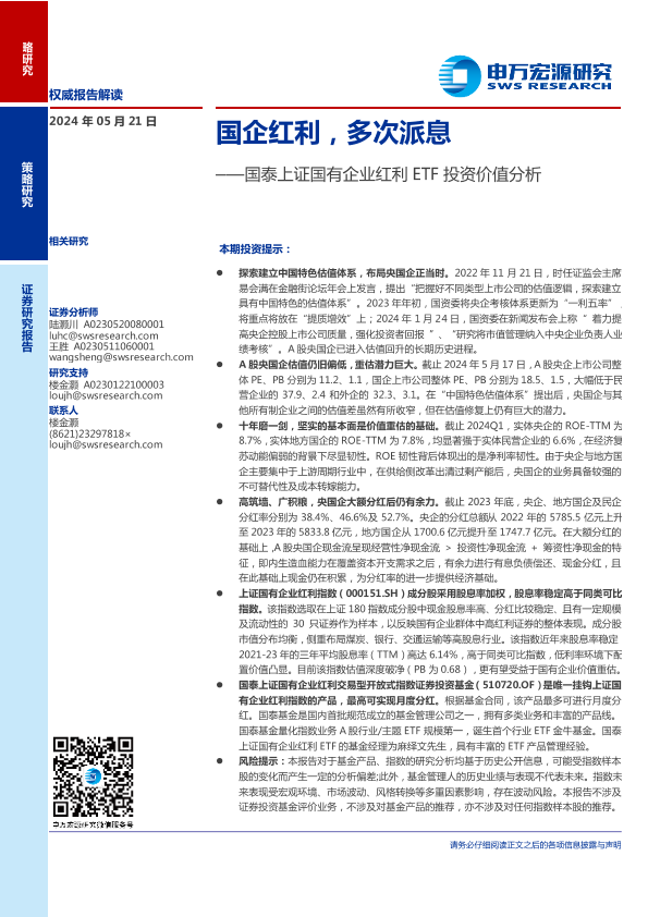 【申万宏源】【20240521】国泰上证国有企业红利ETF投资价值分析:国企红利,多次派息-18页