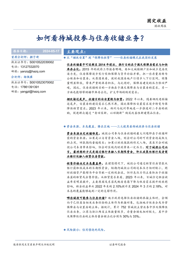 【华安证券】【20240517】如何看待城投参与住房收储业务?-10页