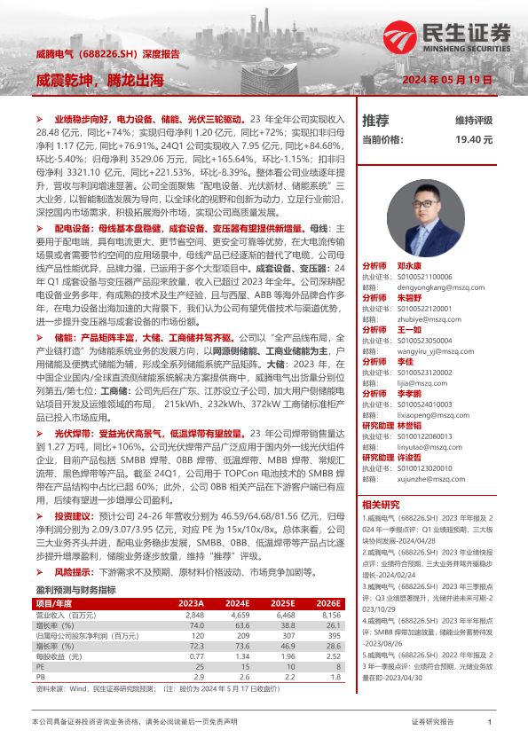 【民生证券】【20240519】威腾电气-688226.SH-深度报告:威震乾坤,腾龙出海-26页