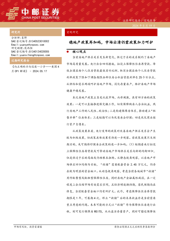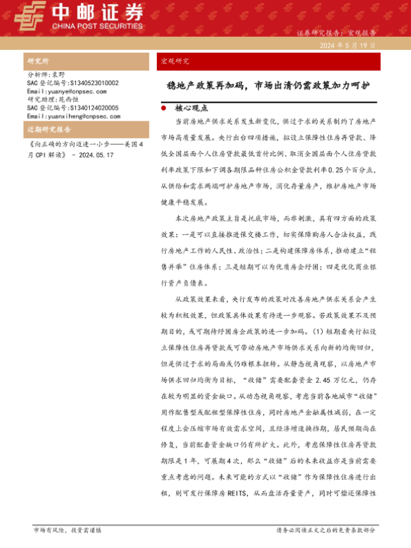【中邮证券】【20240519】宏观研究:稳地产政策再加码,市场出清仍需政策加力呵护-12页