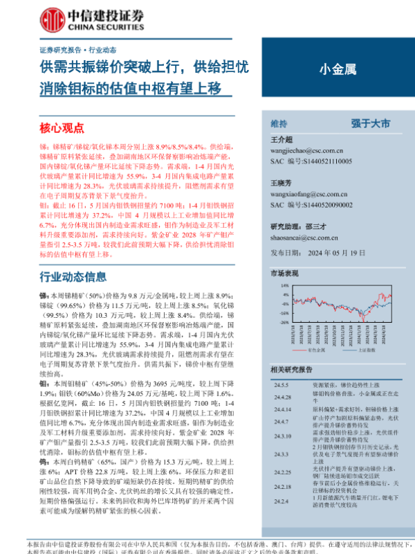 【中信建投证券】【20240519】小金属行业:供需共振锑价突破上行,供给担忧消除钼标的估值中枢有望上移-10页