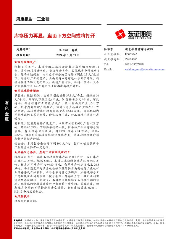 【东证期货】【20240519】工业硅报告:库存压力再显,盘面下方空间或将打开-13页