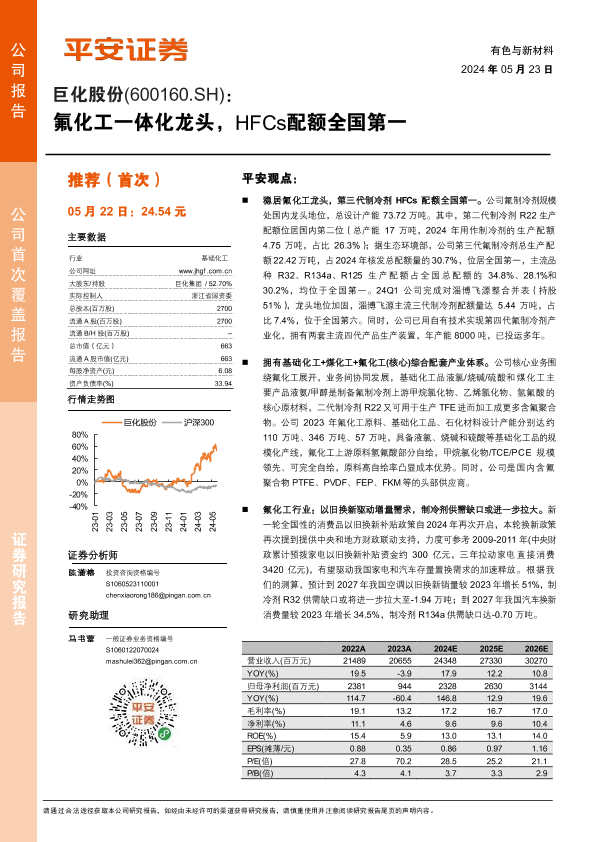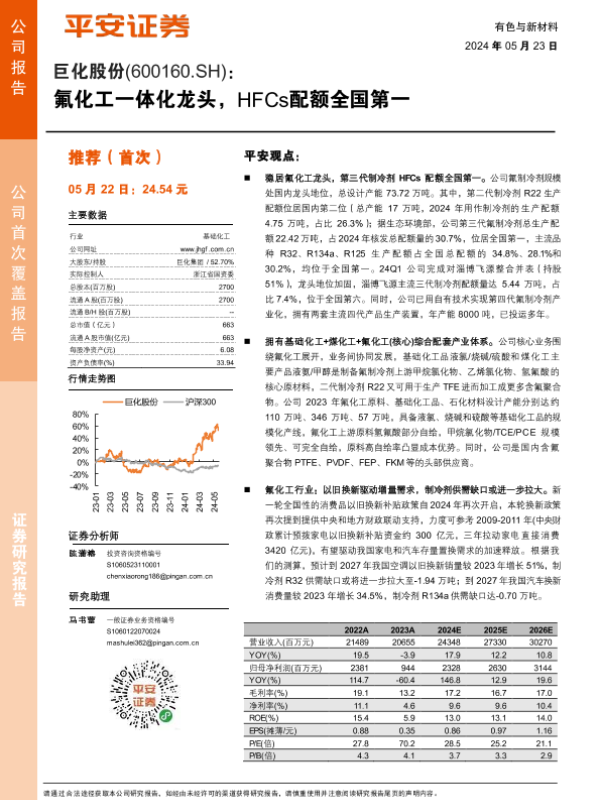 【平安证券】【20240523】巨化股份(600160)氟化工一体化龙头,HFCs配额全国第一-36页