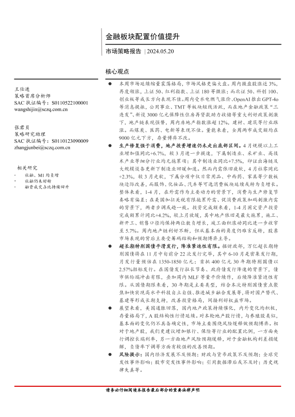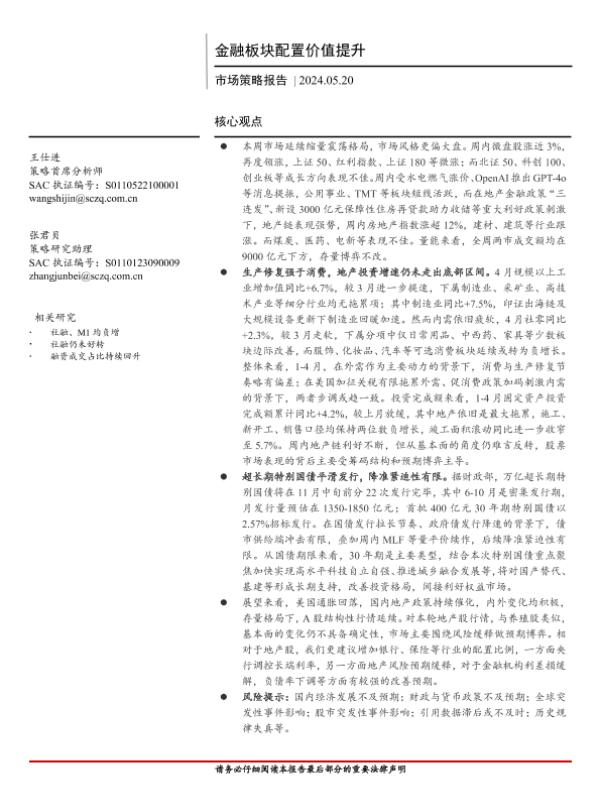 【首创证券】【20240520】市场策略报告:金融板块配置价值提升-15页