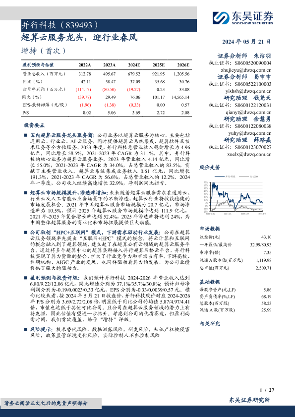 【东吴证券】【20240521】并行科技(839493)超算云服务龙头,迎行业春风-27页