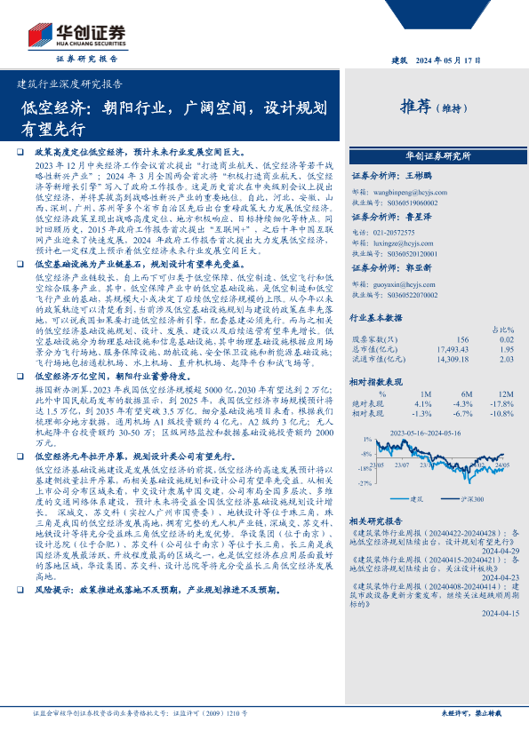 【华创证券】【20240517】建筑行业深度研究报告-低空经济:朝阳行业,广阔空间,设计规划有望先行-22页