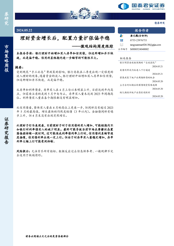 【国泰君安证券】【20240522】理财资金增长后,配置力量扩张偏平稳-14页