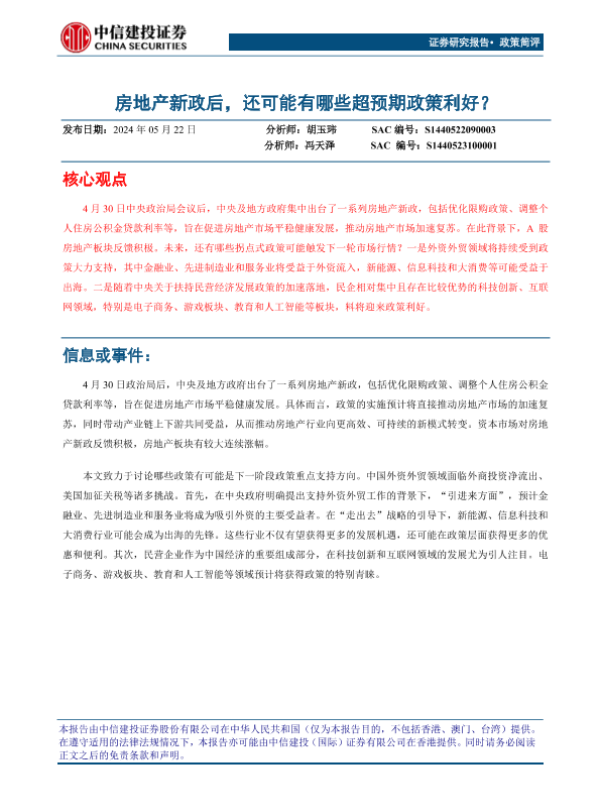 【中信建投证券】【20240522】房地产新政后,还可能有哪些超预期政策利好?-13页