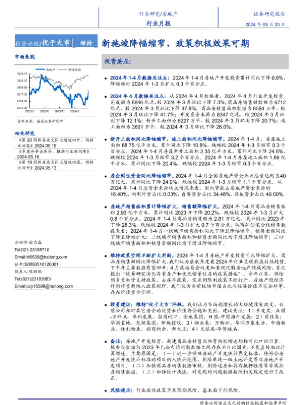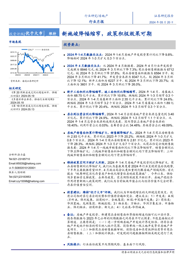 【海通证券】【20240520】房地产行业月报:新施竣降幅缩窄,政策积极效果可期-12页
