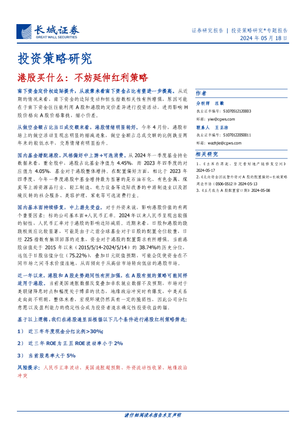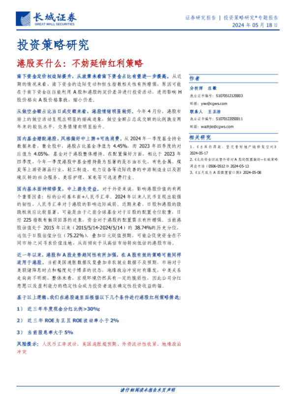 【长城证券】【20240518】投资策略研究-港股买什么:不妨延伸红利策略-14页