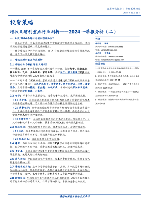 【国盛证券】【20240518】投资策略:2024一季报分析(二),增收又增利重点行业剖析-38页