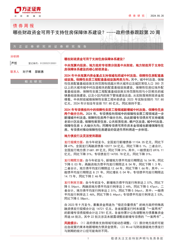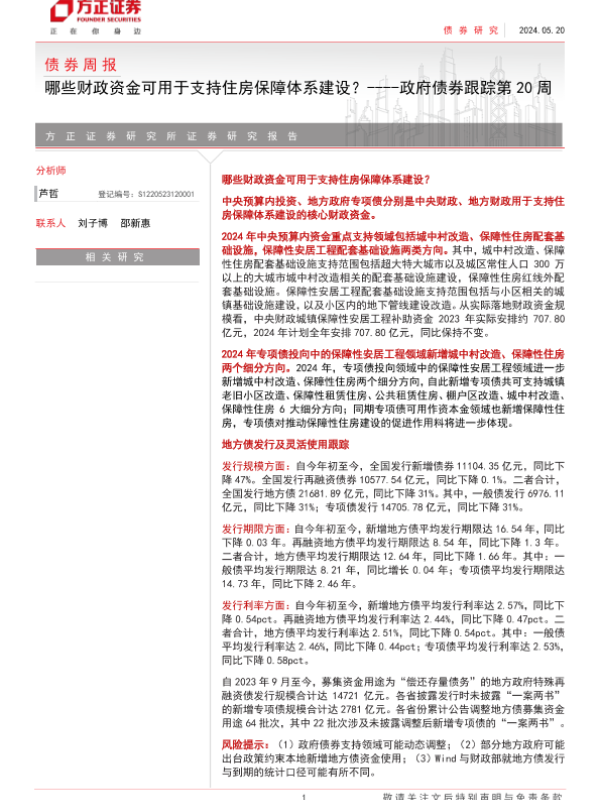 【方正证券】【20240520】政府债券跟踪:哪些财政资金可用于支持住房保障体系建设?-14页