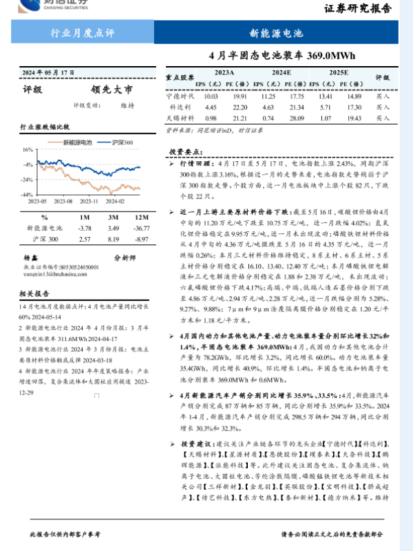 【财信证券】【20240517】新能源电池行业月度点评:4月半固态电池装车369.0MWh-12页
