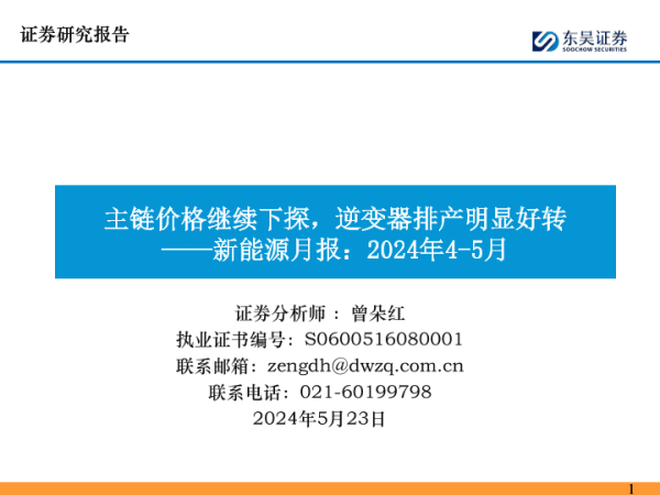 【东吴证券】【20240523】新能源行业月报:2024年4-5月,主链价格继续下探,逆变器排产明显好转-82页