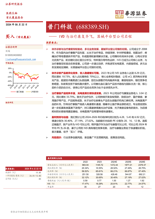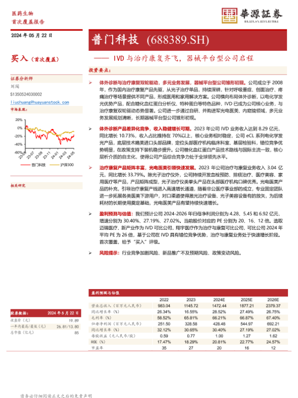 【华源证券】【20240522】普门科技-IVD与治疗康复齐飞,器械平台型公司启程-18页