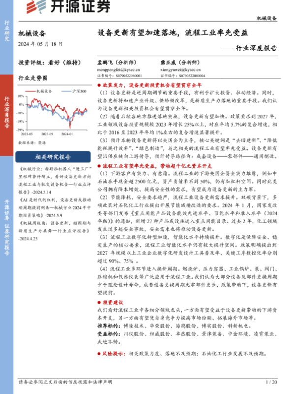 【开源证券】【20240518】机械设备行业深度报告:设备更新有望加速落地,流程工业率先受益-20页