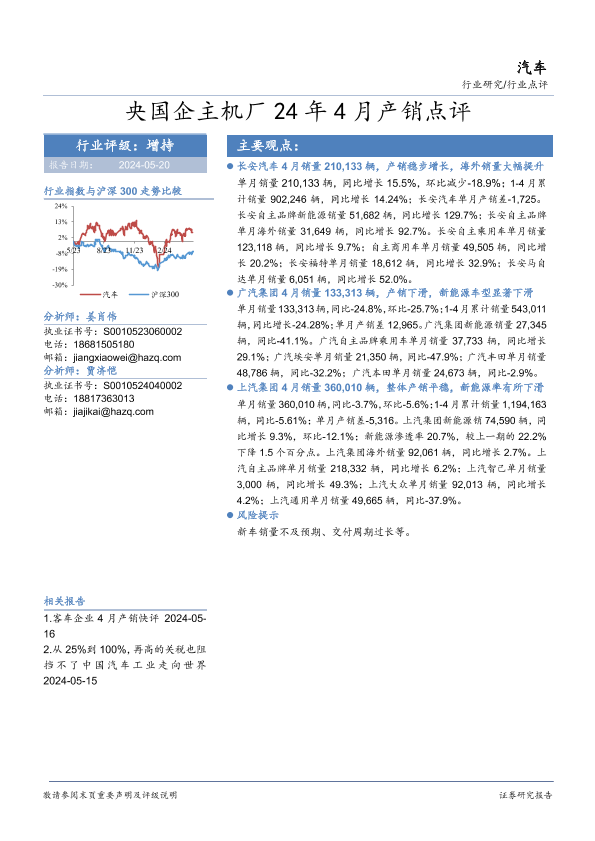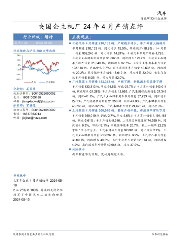 【华安证券】【20240520】汽车行业研究:央国企主机厂24年4月产销点评-15页