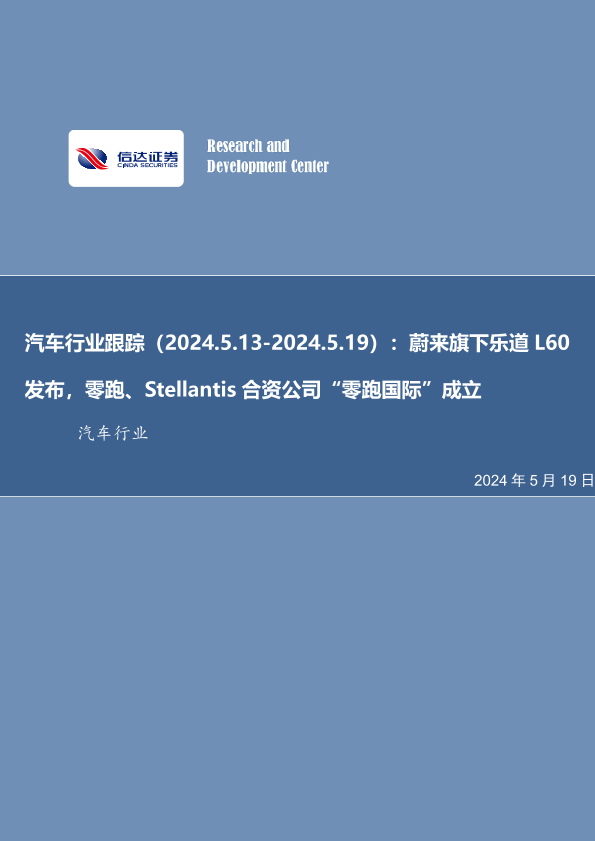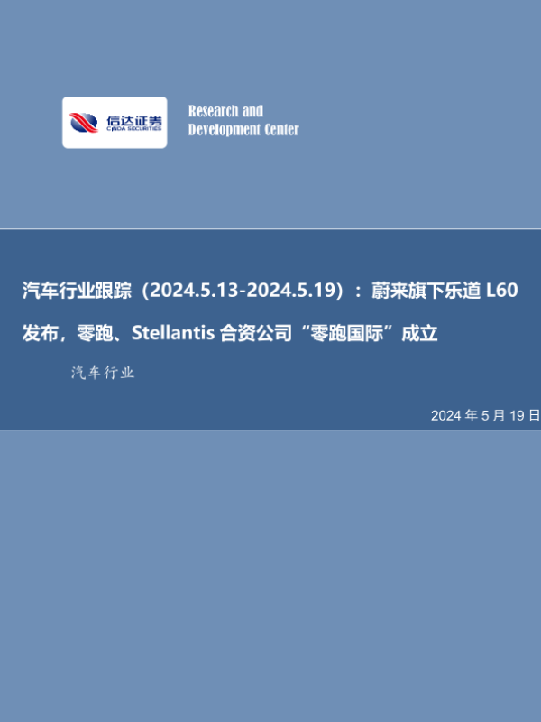 【信达证券】【20240519】汽车行业跟踪(2024.5.13-2024.5.19):蔚来旗下乐道 L60发布,零跑、Stellantis合资公司“零跑国际”成立-21页