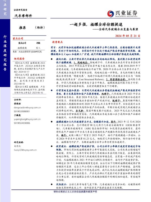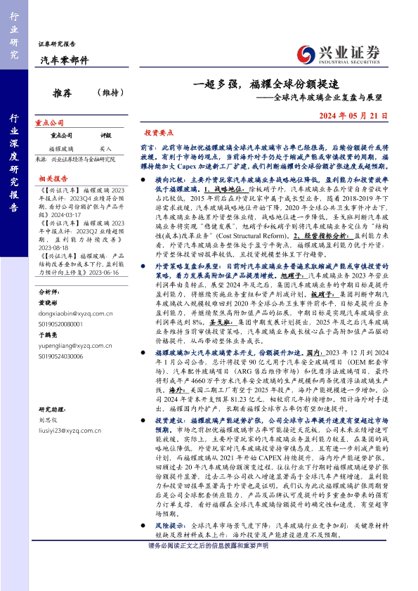 【兴业证券】【20240521】一超多强,福耀全球份额提速——全球汽车玻璃企业复盘与展望-23页