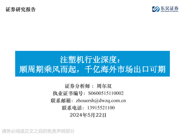 【东吴证券】【20240522】注塑机行业深度:顺周期乘风而起,千亿海外市场出口可期-56页