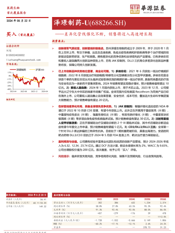 【华源证券】【20240522】泽璟制药(688266)差异化管线催化不断,销售将迈入高速增长期-20页
