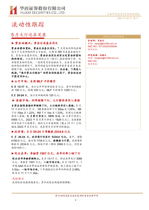 【华西证券】【20240518】流动性跟踪:5月大行还在买票-21页