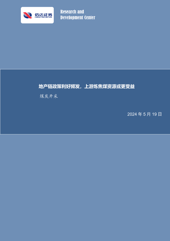 【信达证券】【20240519】煤炭开采行业:地产链政策利好频发,上游炼焦煤资源或更受益-31页