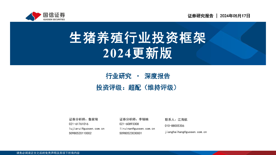 【国信证券】【20240517】生猪养殖行业投资框架2024更新版-41页