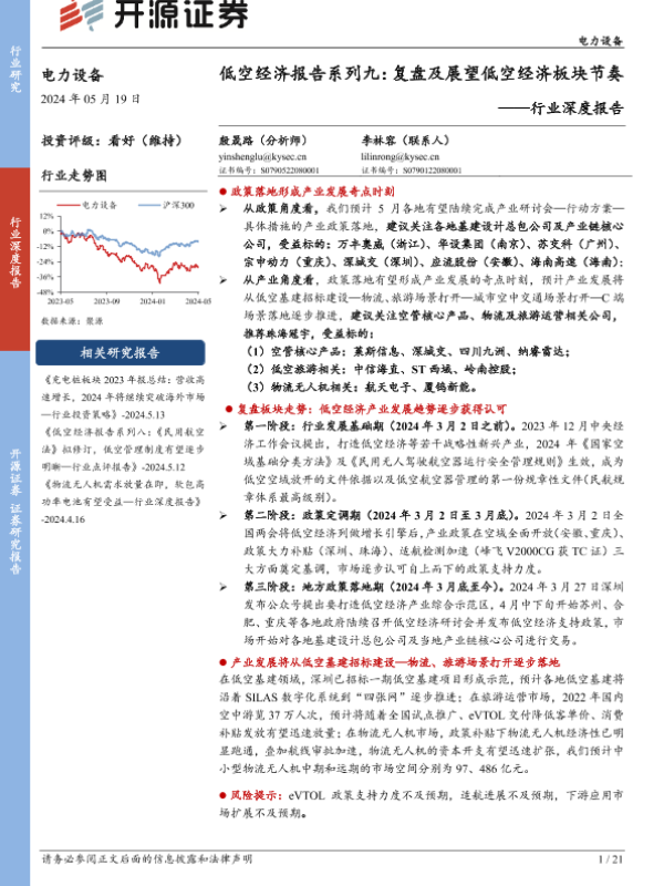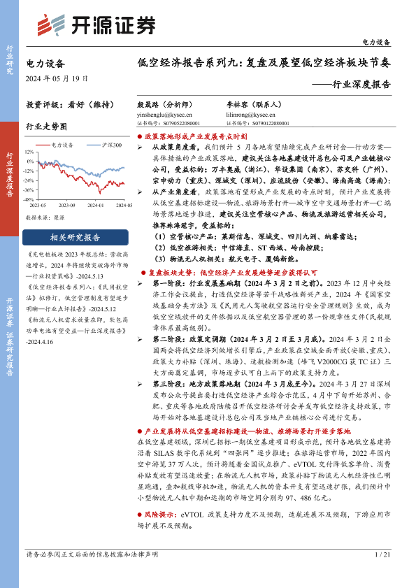 【开源证券】【20240519】电力设备行业深度报告-低空经济报告系列九:复盘及展望低空经济板块节奏-21页