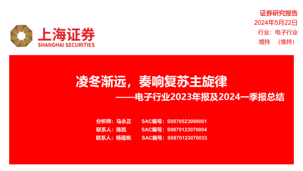 【上海证券】【20240522】电子行业2023年报及2024一季报总结:凌冬渐远,奏响复苏主旋律-21页