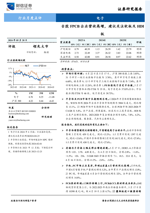 PCB市场 半导体市场 投资建议 电子行业 财务分析